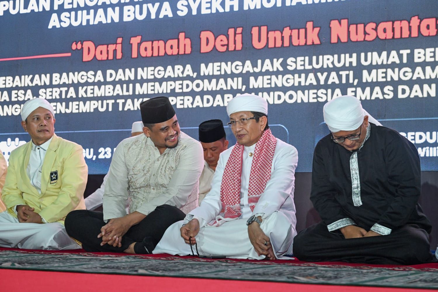 “Mengucapkan terima kasih atas doa dan zikir yang diberikan untuk Sumut dan bangsa Indonesia. Mudah-mudahan masyarakat Sumut mendapat dampak dan manfaat, dan mudah-mudahan persoalan yang ada di Sumut dapat dipermudah,” kata Bobby.