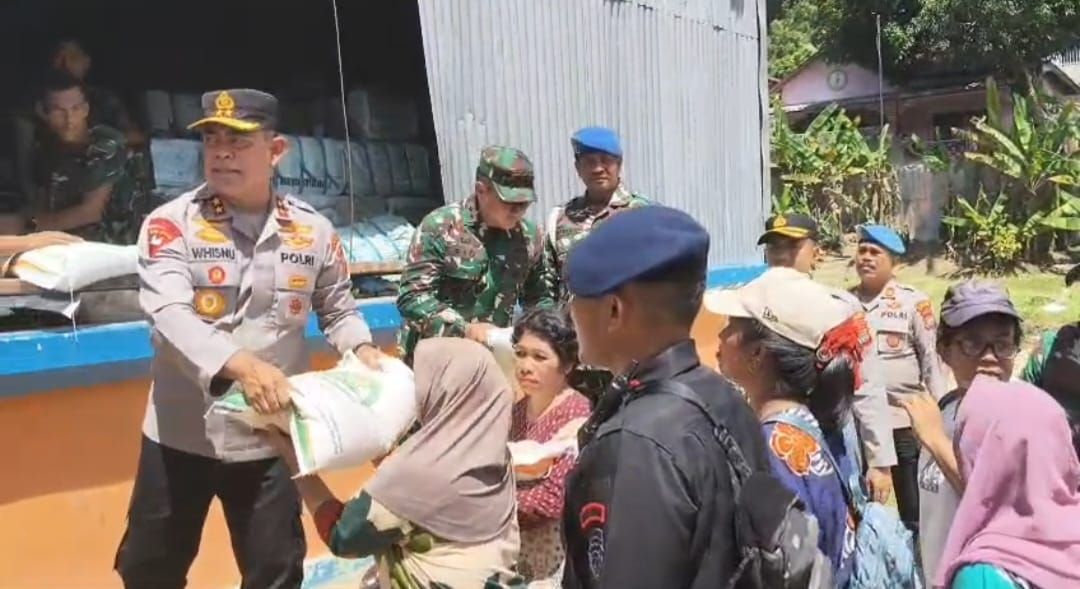 Mayjen Rio Firdianto dan Kapolda Sumut ikut memantau setiap tahapan penyaluran, bahkan turun langsung membagikan beras kepada warga. Keduanya tampak berinteraksi dengan penerima bantuan sambil mengimbau masyarakat tetap tenang dan mengikuti arahan petugas demi kelancaran proses distribusi.