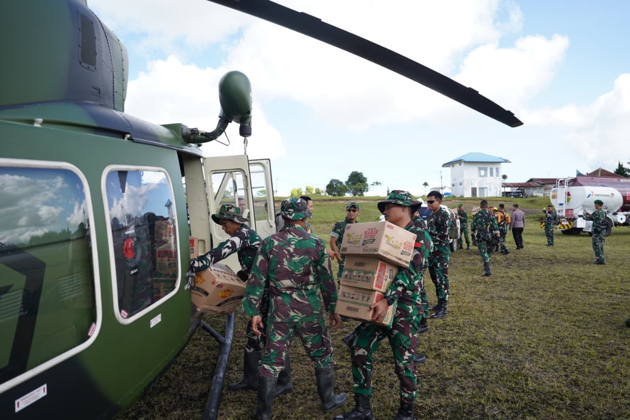 Pendistribusian dilakukan menggunakan helikopter Bell-412 dengan metode airdrop logistic, karena akses darat menuju lokasi masih tertutup material longsor. Operasi udara ini dipimpin Mayor Cpn Diki bersama kru penerbang dan tim Satgas.