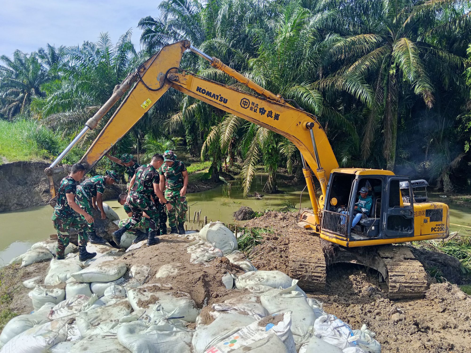 Global Cyber News.Com. -Langkat – Koramil 07/Stabat, Kodim 0203/Langkat, bersama warga Desa Stabat Lama, Kecamatan Wampu, Kabupaten Langkat, melaksanakan perbaikan tanggul yang kembali jebol akibat hujan deras hari Sabtu kemarin, Minggu (14/12/2025). Tanggul ini jebol pasca banjir yang melanda wilayah tersebut beberapa hari sebelumnya.