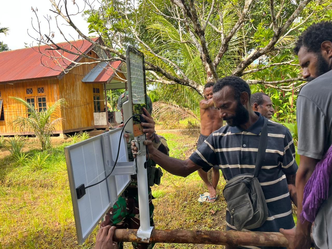 Global Cyber News.Com. -Serukubin, Distrik Iwur, Pegunungan Bintang — Pos Iwur Satgas Pamtas RI–PNG Yonif 751/Vira Jaya Sakti (VJS) melaksanakan kegiatan teritorial berupa pemasangan lampu Penerangan Jalan Umum (PJU) di Kampung Serukubin. Pemasangan ini bertujuan menghadirkan penerangan di jalur perkampungan sehingga aktivitas warga pada malam hari lebih aman, nyaman, dan lancar. (Senin,15/12/2025).