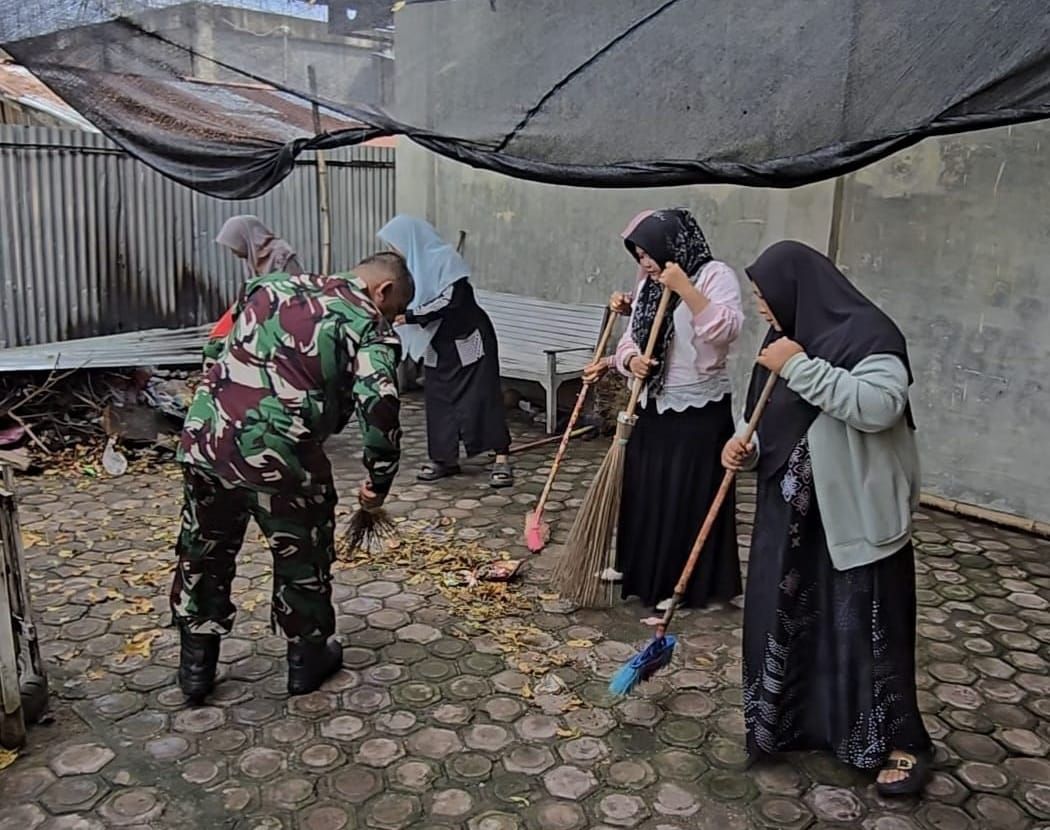 Kegiatan pembersihan tersebut dipimpin langsung oleh Danramil 03/Dewantara, Kapten Czi Jamidin, dan diikuti oleh seluruh personel Koramil 03/Dewantara bersama pihak sekolah.