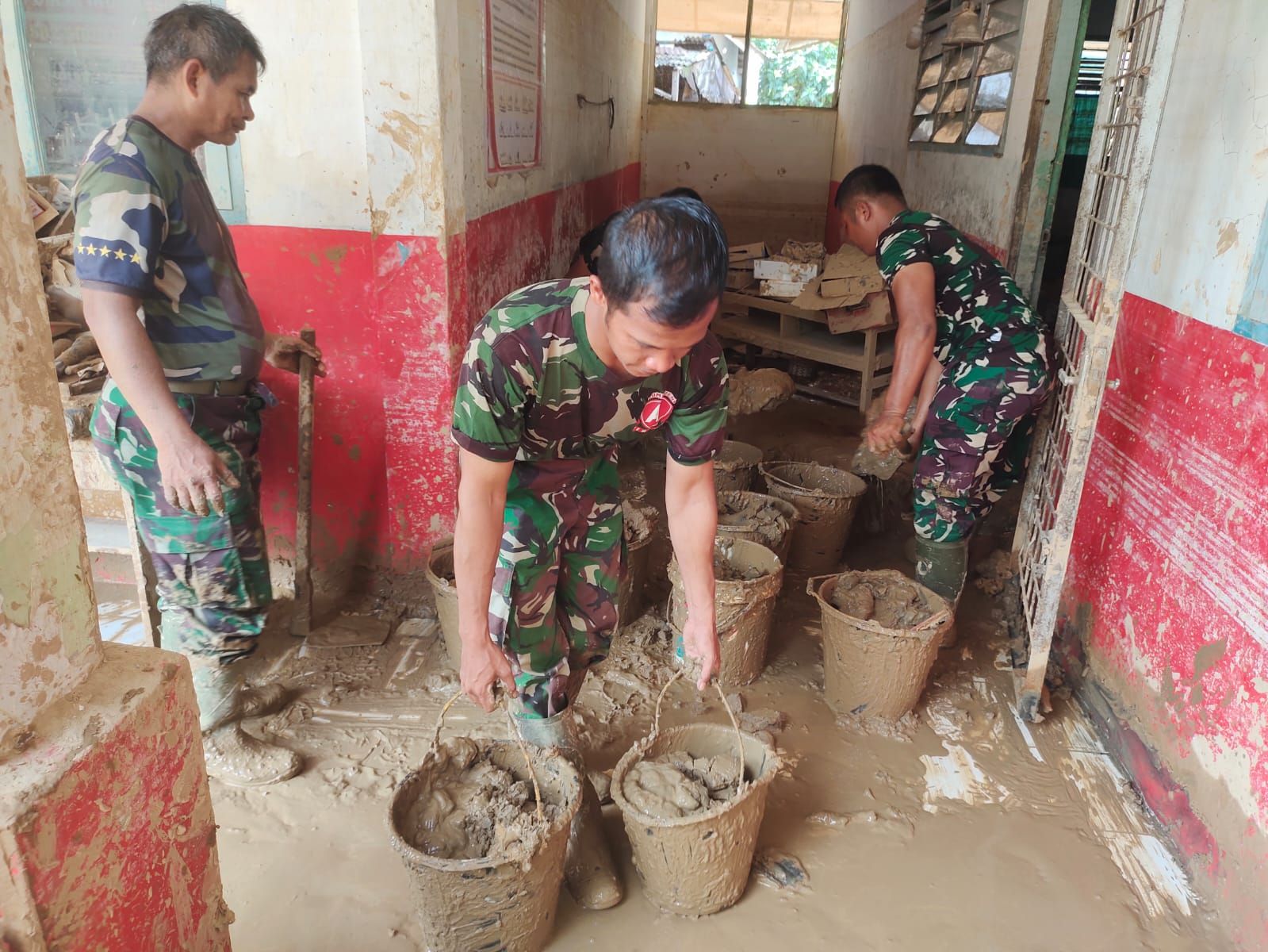 Adapun sasaran kegiatan meliputi pembersihan lumpur di ruangan sekolah, pengeluaran meja dan perlengkapan sekolah, serta pembersihan ruang kelas agar kembali layak digunakan.