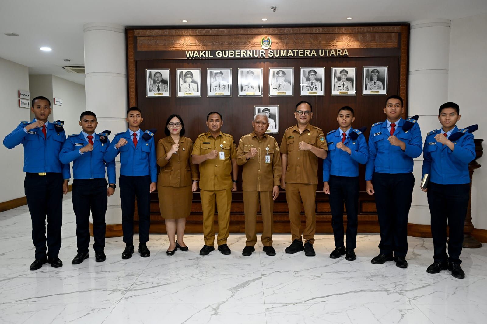 Global Cyber News.Com. -Medan I Wakil Gubernur (Wagub) Sumatera Utara (Sumut) Surya menerima audiensi siswa SMA Taruna Nusantara di ruang kerjanya, Lantai 9 Kantor Gubernur Sumut, Jalan Diponegoro, Medan, Selasa (23/12/2025). Pada kesempatan tersebut, Wagub Surya menyampaikan sejumlah pesan inspiratif kepada para siswa sebagai generasi penerus bangsa.