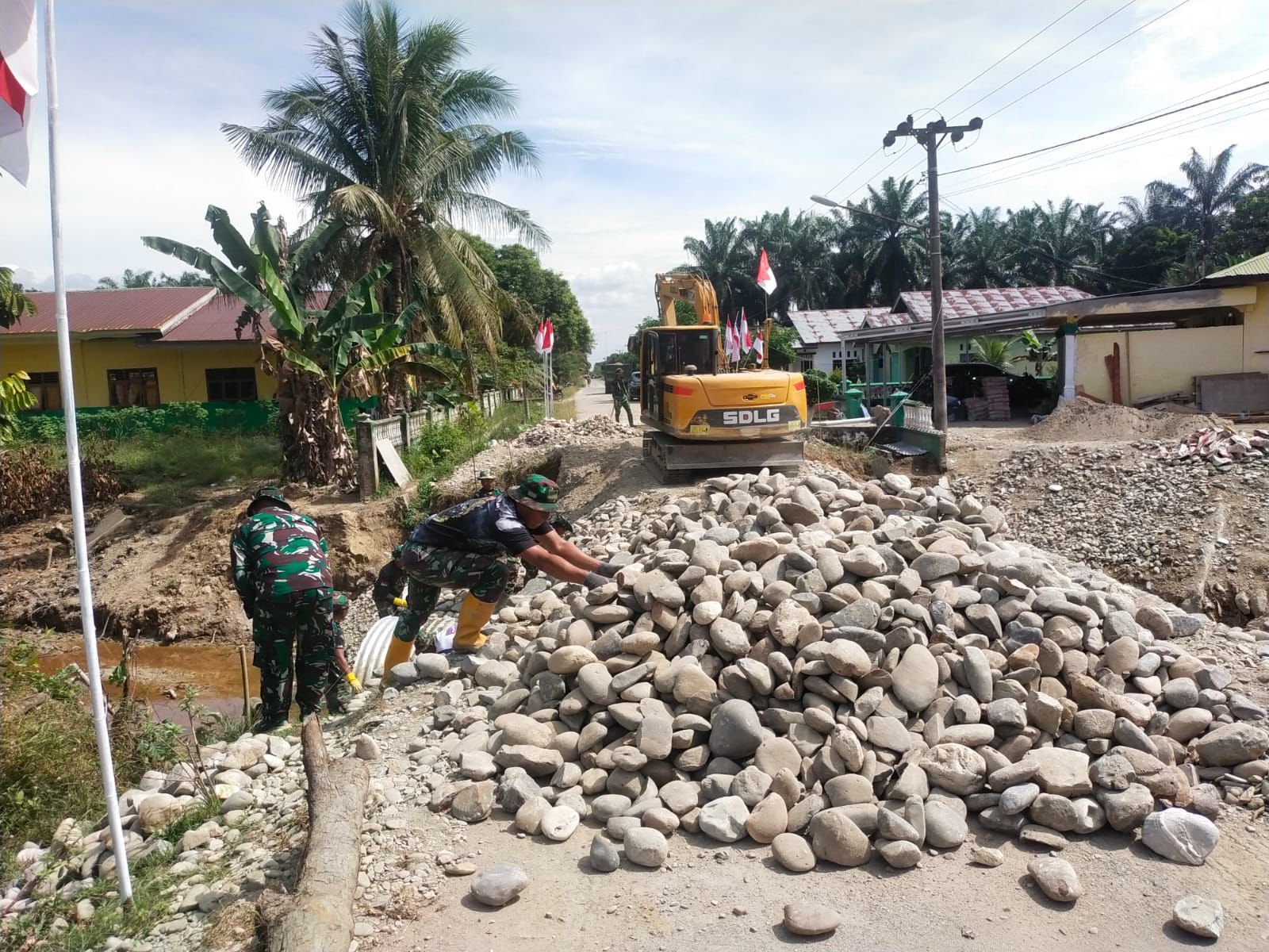 Global Cyber News.Com. -Langkat — Satgas Gulbencal Kodam I/Bukit Barisan melalui Kodim 0203/Langkat melaksanakan pembangunan jembatan tipe Armco di Desa Sei Litur Tasik, Kecamatan Sawit Seberang, Kabupaten Langkat. Rabu (01/012026). Kegiatan ini merupakan bagian dari upaya TNI membantu percepatan pemulihan infrastruktur guna mendukung aktivitas dan mobilitas masyarakat setempat.