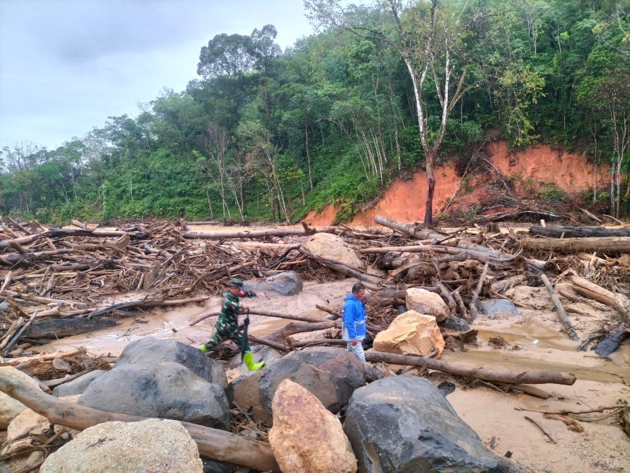 Danrem 023/KS dan Bupati Tapanuli Tengah memerintahkan penggunaan alat berat untuk memperbaiki tanggul Sungai Sigala-gala yang jebol. Sebanyak 46 warga dari Desa Saur Manggita, Desa Kalangan II, dan Link V Siantar Gunung dievakuasi menuju posko pengungsian di Hutanabolon. Tiga desa tersebut telah ditetapkan zona merah untuk mencegah warga terjebak banjir atau longsor saat curah hujan tinggi.