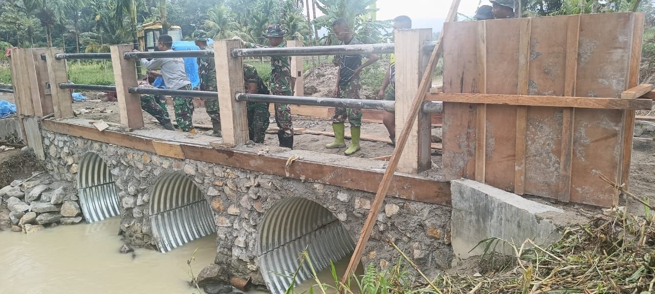 Pengerjaan jembatan melibatkan personel dari Yonzipur I/DD dan Babinsa Koramil setempat. Jembatan yang dibangun merupakan jembatan tipe Aramco dengan panjang keseluruhan 8 meter dan lebar 3 meter. Sementara itu, kedalaman saluran mencapai 3 meter dengan diameter pipa Aramco 1,5 meter dan panjang masing-masing pipa 4 meter yang dipasang sebanyak tiga lubang.