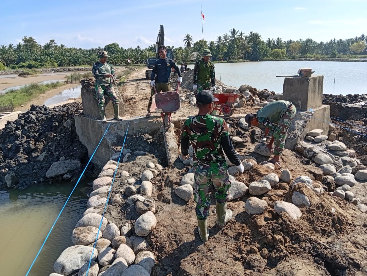 Koramil 09/SND Bersama Yonzipur Bangun Jembatan Armco Tanggap Darurat di Aceh Utara
