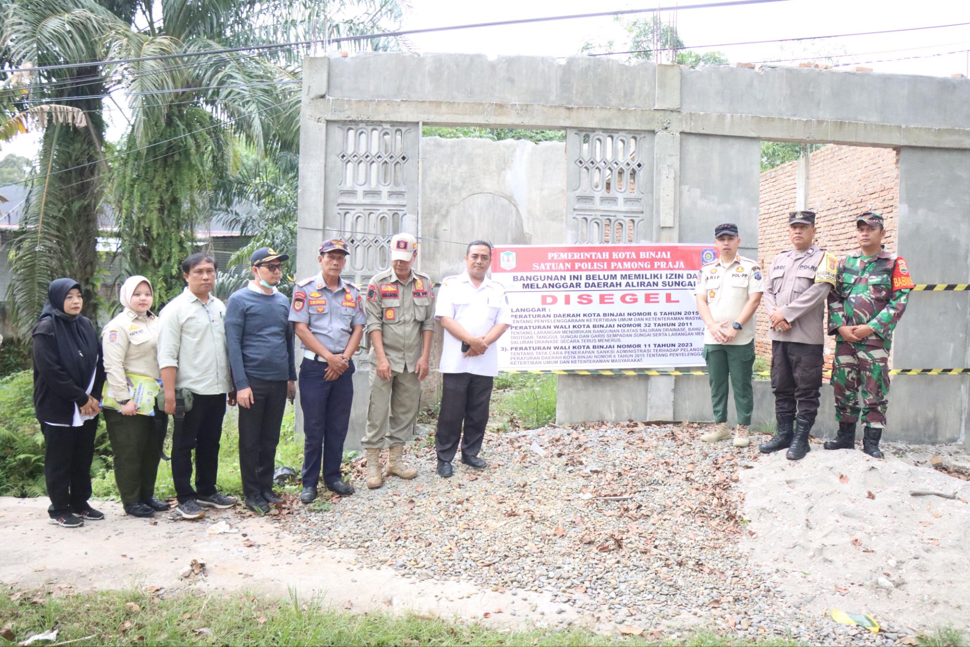 Penertiban tersebut dipimpin langsung oleh Kasat Pol PP Kota Binjai Arif Budiman Sihotang, S.STP., M.H, bersama perwakilan Dinas PUTR, Camat Binjai Selatan Salamuddin, S.E, serta Lurah Pujidadi Ida Sufianty, S.Sos. Tindakan ini dilakukan karena bangunan tersebut berada di area Daerah Aliran Sungai (DAS) yang melanggar ketentuan tata ruang dan ketertiban umum.