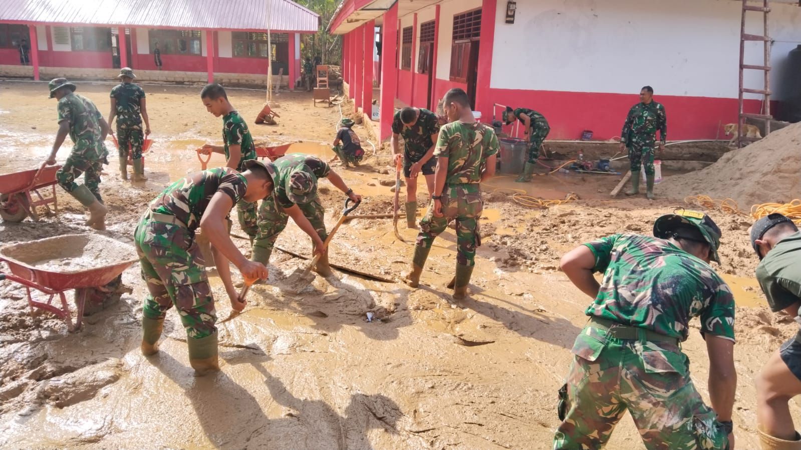 Pembersihan dan perbaikan dilakukan secara menyeluruh, meliputi pengangkatan lumpur di dalam dan sekitar ruang kelas, pembersihan area sekolah, pembersihan serta pengecatan bangku dan meja siswa, pengecatan ruang kelas dan atap, perbaikan plafon yang rusak, serta pembuatan pagar sekolah.