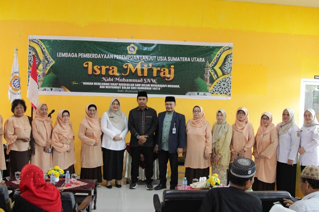 Global Cyber News.Com. –Medan I Lembaga Pemberdayaan Perempuan Lanjut Usia (LPPLU) Sumatera Utara (Sumut) memperingati Is’ra Mi’raj Nabi Muhammad SAW di Gedung Legiun Veteran Jalan Binjai Medan Rabu (28/1/2026).