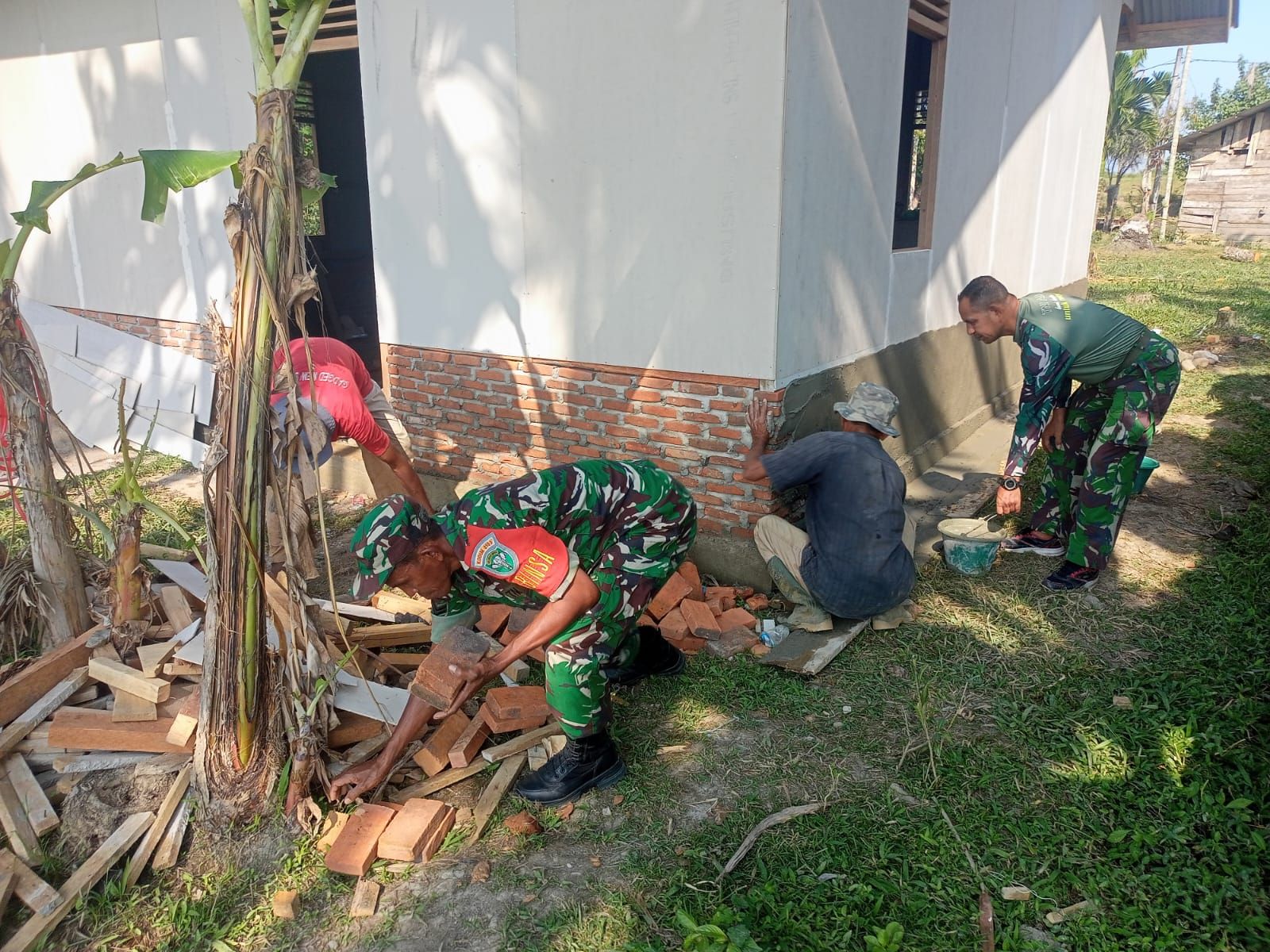 Kegiatan yang dipimpin langsung oleh Danramil 15/Mtk, Kapten Inf Mhd Saibani, bersama para Babinsa hari ini difokuskan pada tahap lanjutan pemasangan plafon rumah. Berdasarkan pantauan di lapangan, para prajurit TNI tampak telaten mengerjakan detail bagian dalam bangunan guna memberikan kenyamanan maksimal bagi pemilik rumah. Sinergi ini merupakan bukti nyata kemanunggalan TNI dalam membantu mengatasi kesulitan rakyat di wilayah teritorialnya.