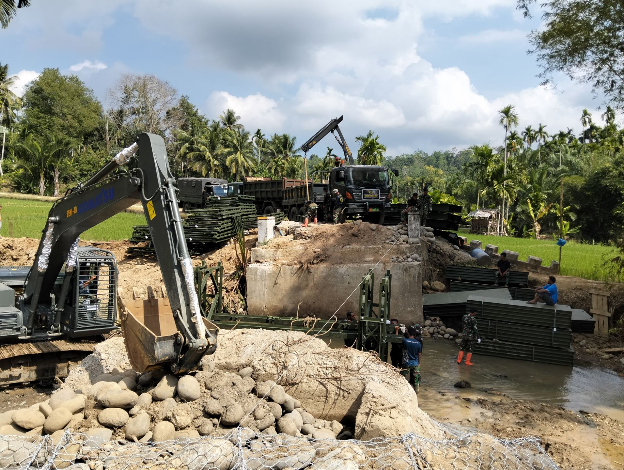 Kegiatan pembangunan Jembatan Bailey tersebut berada di wilayah teritorial Koramil 19/Sawang Kodim 0103/Aceh Utara dan dilaksanakan oleh satuan Zeni TNI dengan dukungan unsur terkait. Seluruh rangkaian kegiatan dipantau langsung oleh Babinsa Koramil 19/Sawang di lapangan.