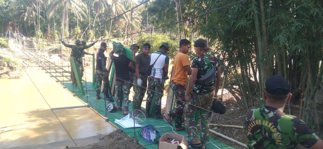 Koramil 19/Sawang Dampingi Pembangunan Jembatan Gantung Garuda, Prajurit Zipur Tetap Semangat di Bawah Terik Matahari