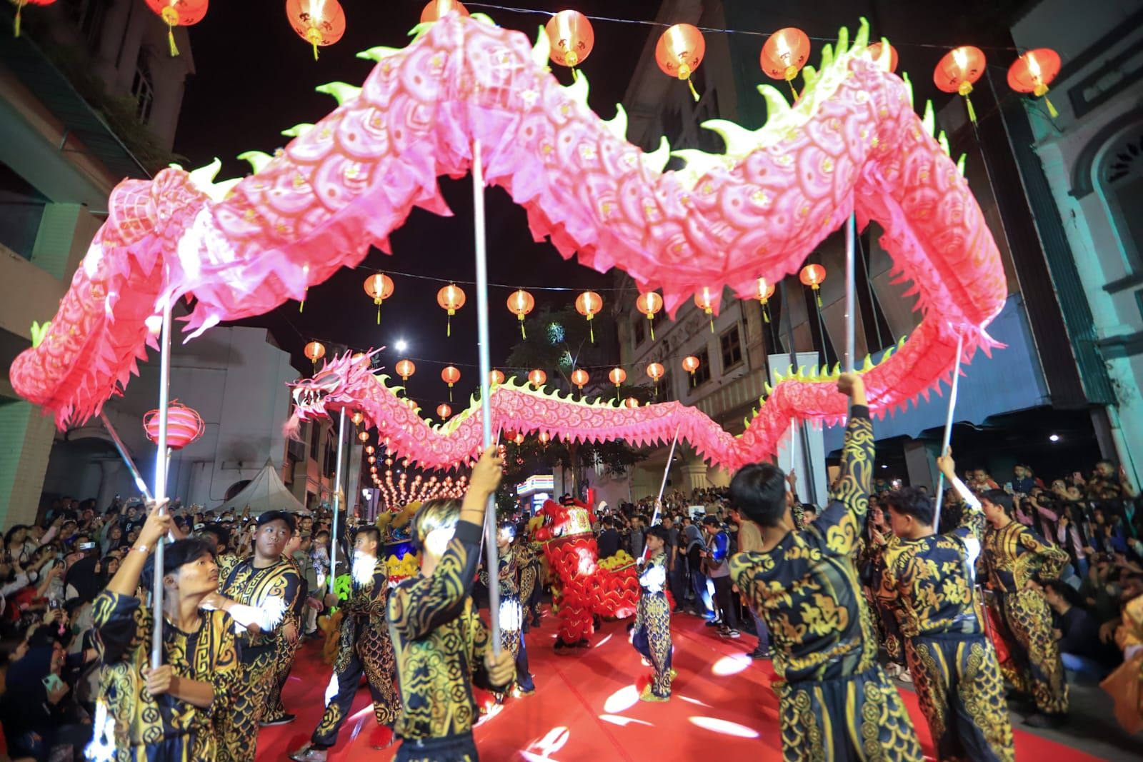 Kehadiran Wali Kota Medan, Rico Tri Putra Bayu Waas didampingi Ketua TP PKK Kota Medan, Ny. Airin Rico Waas menambah kemeriahan acara. Keduanya berjalan membelah lautan manusia dengan diiringi tabuhan genderang dan atraksi lincah tarian barongsai dan liang liong. Apalagi momen malam itu terasa kian spesial karena perayaan imlek dimulai tepat setelah pelaksanaan salat tarawih selesai, mencerminkan tingginya toleransi antarumat beragama di kota Medan.