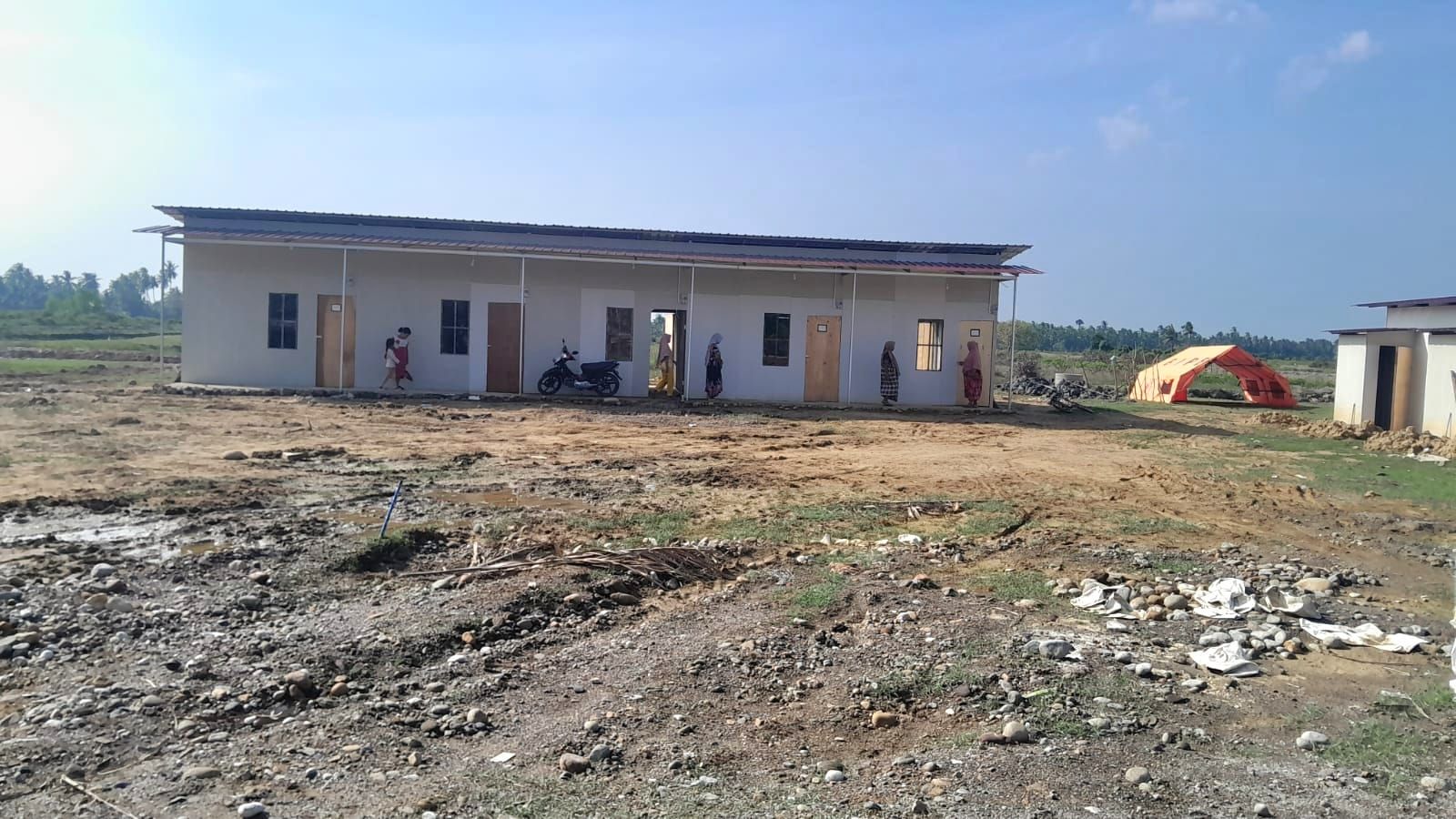 Sementara itu di Desa Kuala Cangkoy pembangunan Huntara sebanyak 104 unit juga telah rampung dengan capaian 100 persen. Kondisi fasilitas pendukung masih serupa, dimana air bersih belum tersedia dan jaringan listrik baru sebagian terpasang.