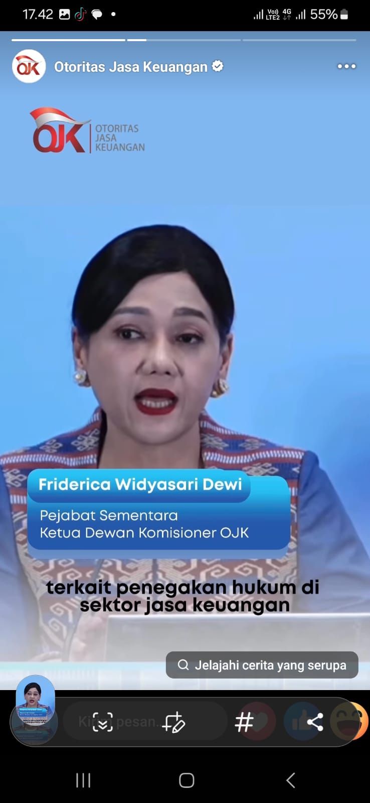 “Sistem keuangan Indonesia juga tetap didukung oleh kerangka pengawasan yang kuat, dan kami akan terus melanjutkan reformasi struktural untuk meningkatkan transparansi, memperdalam pasar modal, serta memperkuat kepercayaan investor dalam jangka panjang,” kata Friderica.