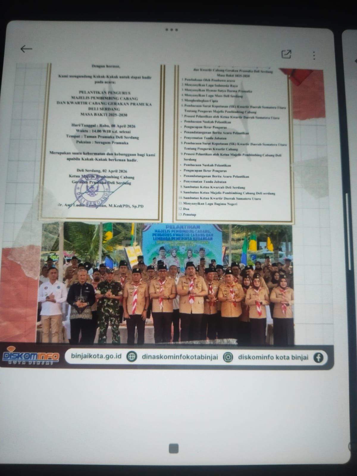 - Terkait ketidakhadiran Sekda dalam agenda Rapat Dengar Pendapat (RDP) dimaksud, perlu kami jelaskan bahwa Sekretaris Daerah tidak dapat menghadiri undangan tersebut dikarenakan adanya kegiatan menghadiri undangan Pelantikan Pengurus Majelis Pembimbing Cabang dan Kwartir Cabang Gerakan Pramuka Kabupaten Deli Serdang Masa Bakti 2025-2030 di Lubuk Pakam yang telah terjadwal sebelumnya.