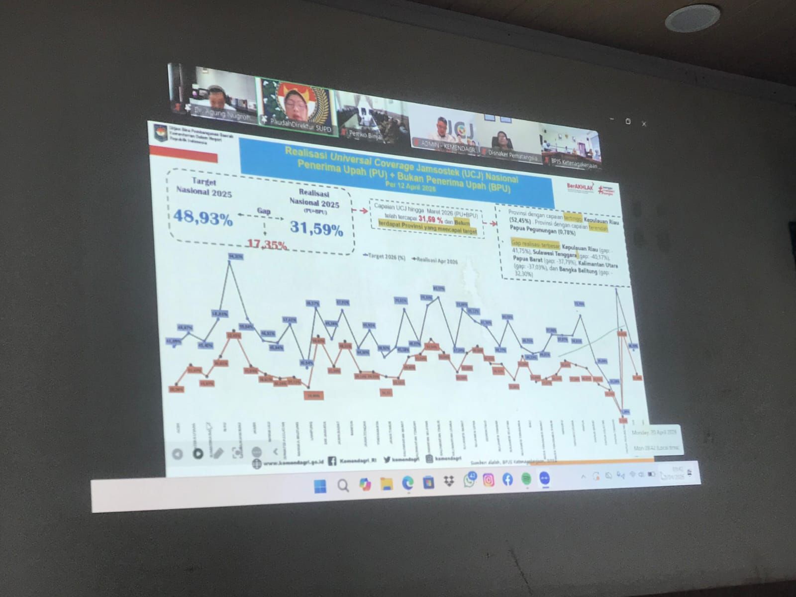 Global Cyber News.Com. -Pemerintah Kota Binjai mengikuti kegiatan Pembukaan Nasional Asistensi dan Monitoring Evaluasi (Monev) Pelaksanaan Percepatan Capaian Universal Coverage Jaminan Sosial Ketenagakerjaan (UCJ) Tahun 2026. Kegiatan tersebut dilaksanakan secara virtual dari Ruang Rapat III Pemko Binjai, Senin (20/4). Turut hadir dalam kegiatan ini Asisten Pemerintahan dan Kesejahteraan Rakyat Sekretariat Daerah Kota Binjai Putri Syawal Br. Sembiring serta Kepala Bidang Perlindungan dan Jaminan Sosial Dinas Sosial Kota Binjai Hendra F. Sitorus, S.E., M.M., dan Kepala Bidang Retribusi dan Pajak Daerah BPKPD Kota Binjai Wanda Riswahyudi, SH.Â