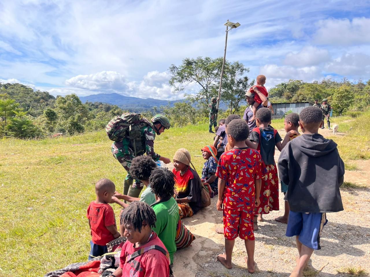 Dalam kegiatan tersebut, personel Pos Serambakon memberikan pelayanan pengobatan gratis kepada warga yang memiliki keluhan kesehatan. Selain itu, prajurit juga membagikan permen kepada anak-anak, yang disambut dengan penuh antusias dan keceriaan.