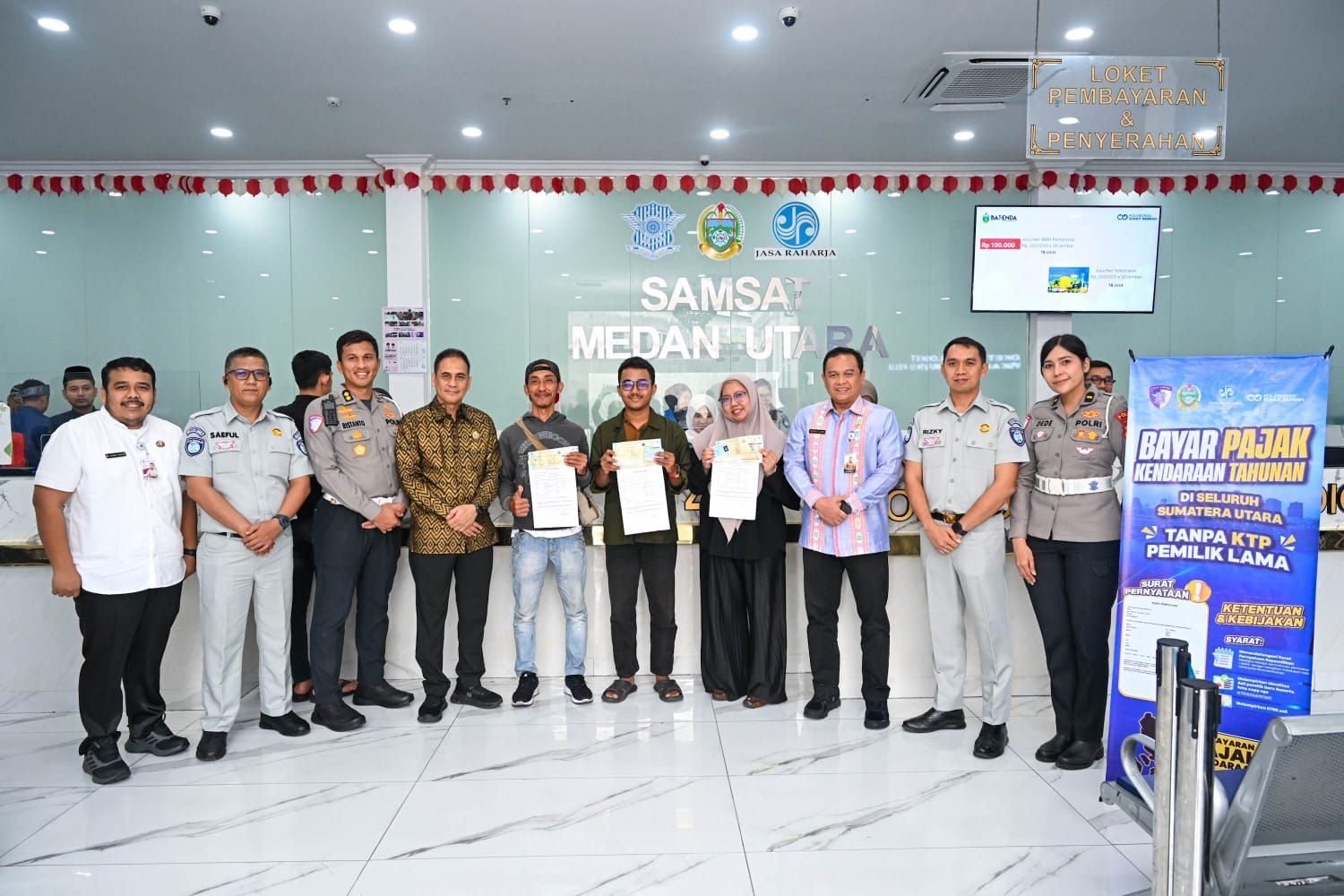 “Harapan kita dengan langkah kebijakan ini, bisa memudahkan masyarakat dalam membayar PKB tahunan. Semoga wajib pajak antusias datang ke seluruh Samsat di Sumut, khususnya bagi pemilik kendaraan yang data di STNK-nya masih atas nama pemilik sebelumnya,” tegasnya.
